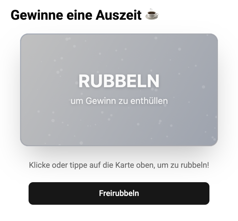 In der Kampagnenvorschau sehen Sie, wie der App-Nutzer an der Kampagne teilnehmen kann. Dies geschieht entweder durch ein Rubbellos oder ein Glücksrad.